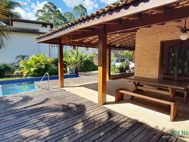 Previous Next Linda Casa com 4 suítes - Cond. Parque das Artes - Granja Viana Linda casa moderna e integrada, estilo contemporâneo, com acabamentos resistentes e de excelente qualidade, localizada ao lado da área de preservação ambiental (APP) do Condomínio Parque das Artes, com acesso pela Estrada do Capuava na altura do retorno do km 26 da Rodovia Raposo Tavares sentido São Paulo, e também por rotas alternativas por Embu das Artes ou pelo Rodoanel.Construção robusta com ambientes espaçosos, iluminados e arejados e repletos de armários.Hall de entrada social com pé-direito alto, porta dupla e laterais envidraçadas.Living para 3 ambientes com possibilidade de abertura total permitindo integração com a varanda gourmet, gramado e canil anexo.Espaço íntimo com sala de TV, escritório e quarto (suíte) para hóspedes.4 suítes com armários planejados, sendo 1 suíte máster com closet.Banheiros com gabinetes, bancada e box de vidro, sendo a máster com 2 cubas e banheira de hidromassagem.Cozinha integrada ao living com um grande e confortável balcão de preparo e espaço para mesa de almoço e café. Fogão de 5 bocas com coifa, bancada com 2 cubas inox, micro-ondas, geladeira duplex side by side, lava-louças e grande despensa.Área de serviço aberta ensolarada e lavanderia fechada, gabinetes, depósito e banheiro de serviço.Pisos em tacos de madeira (principalmente nos dormitórios) e porcelanato rústico.Projeto de iluminação.Louças e metais diferenciados.Ar condicionados nas suítes.Garagem para 6 vagas, sendo 3 cobertas, repleta de armários.Aquecimento: Gás de passagem.Abastecimento de água: Sabesp.Armazenamento: 7.000 litros.Sobre o Condomínio Parque das Artes:Condomínio de casas de alto padrão, muito arborizado e tranquilo.Ótimo sistema de segurança privada armada, com portaria e ronda 24h.Ampla área de lazer com campo de futebol, gramado, quadra de tênis, beach tennis, quadra poliesportiva, salão de festas, quiosque gourmet com churrasqueira, playground e lindo lago com bosque, cercado por exuberante vegetação.Grande área de preservação (APP) no miolo do condomínio. R$ 2.480.000,00 Venda Jardim Indaiá Cód. G2670 Aceitafinanciamento